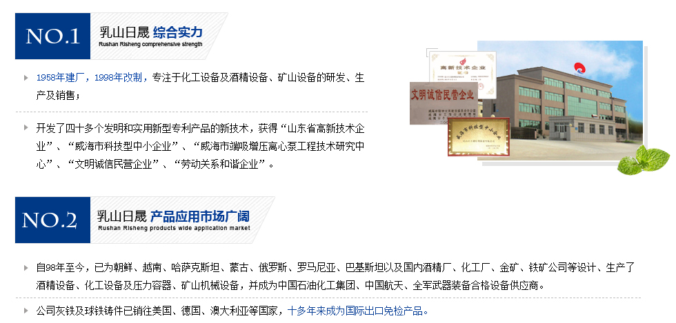 乳山市日晟機械制造有限公司位于山東省乳山市城區(qū)工業(yè)園日照路82號。公司地處膠東半島南端,東毗威海,北臨煙臺,西近青島,南瀕黃海,依山傍海,交通便利。公司于1958年建廠,原屬國家輕工部定點設備生產(chǎn)廠家,自1998年改制后,現(xiàn)有員工128人,其中工程技術(shù)人員26人,加工設備齊全,占地面積3萬平方米,是集鑄造生產(chǎn)、機械加...